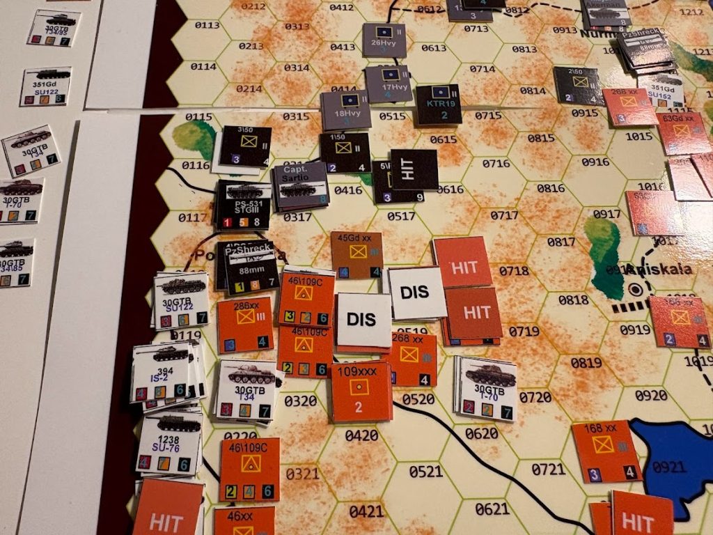 I won’t dwell too much on the “test” aspect, and will focus more on the game itself. Historically, the Soviet onslaught was halted through massed artillery fire and aerial bombardments that crushed concentrated Soviet armor and infantry. The same holds true in the game: these are the decisive factors. Infantry feels somewhat fragile and slow, and the fine line between victory and defeat depends on the effective use of heavy assets.